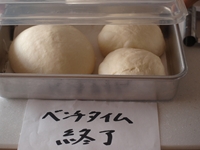 発酵器をお持ちの方はバットにキャンバス生地を敷き、その上に生地を並べた状態で発酵器で15分のベンチタイムを取ります。「発酵器」を使用せずに、室内でベンチタイムをとる場合はカバーをするか、キャンバス生地をかぶせさらにビニール袋にいれて15分のベンチタイム。表面の乾燥には注意しましょう。