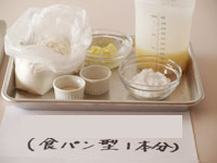 今回の配合はカメリアを使った場合の配合です。スーパーキングやパリジャン、・・・など他の粉を使用した場合は水分量が異なります。また、水を牛乳に置き換えると発酵不足になります。また、スキムミルクを加えた場合の水分量は今回の配合とは異なります。