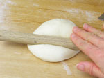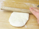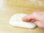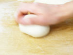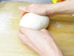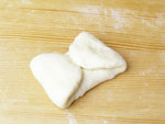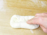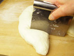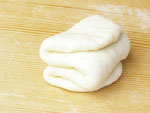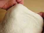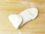 2.捏ねが終了したかどうか、生地を手にとり指先を使ってそっと伸ばしてみましょう。切れずに薄く伸びたら生地の捏ねは終了です。生地をきれいに丸めボウルに戻し、ラップをして28度のところで45〜50分の第一醗酵をさせます。