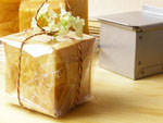 ●小さなサンドイッチも魅力的ですが、午後の3時のおやつのためにハニーシロップをたっぷりかけたハニートーストにしたいと思います。蓋をしてコロコロサイズの角型食パンミニサイズに焼き上げましょう。忘れると困ってしまうことがひとつだけ!型にショートニングを塗ることです。隅っこの方にもしっかり塗っておきましょう。せっかくのキューブの形を忠実に表現するためには成型が重要です。角がしっかりと出たパンに焼き上がったら、いそいそお友達のところへおすそわけします。