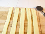 8.伸ばす大きさは16×36センチ(ミニなのにロング缶1本分の場合)まで伸ばします。長い方のサイズは編み込む際の長さになりますので、頑張って伸ばしてください。そして全体を均一な幅になるよう5本にカットします。