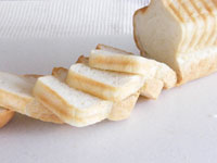 7.あら熱の取れたフカフカパンをスライスするのは意外と難しいもの。底の方からスライスするとカットしやすいですよ。パンにラインが入っているので目安になりスライスしやすいです。お好みの具をたっぷりサンドしてどうぞ!