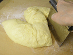 第一醗酵が終了したら台に取り出し分割をしましょう。6等分に分けます。一個およそ150グラム前後に分割します。