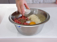 1、みじん切りにしたたまねぎ・お肉・卵・パン粉に塩・コショウをしてボールの中でよくこねます。