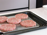 2、出来上がったハンバーグを天板に並べて200度に予熱したオーブンで9分で焼きあがります。