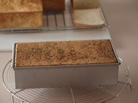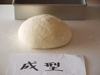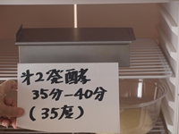 33〜35度で40分、第二発酵させます。第二発酵終了の目安は蓋をそっと開けてみて、生地があと1センチほどで蓋にくっ付く状態になっていたら第二発酵はOKです。蓋をそっと開ける際、すでに蓋に生地がくっ付いているようなら、すぐに焼きに入りましょう。