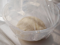 265グラムの強力粉で捏ねたパン生地の第一発酵にジャストサイズ21センチボウル(1.9リットル)