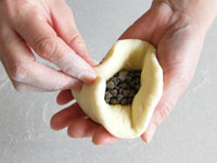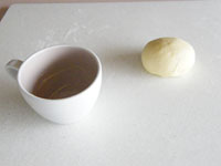 何かと出番の多いハンバーガー用パン型に入れるときは、ちょっと多めの生地を用意します。