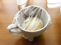 使用するコーヒーカップはオーブン仕様のものをお使いください。内側にショートニングを塗っておきましょう。
