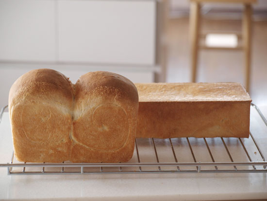 ニーダーで一度に1斤山形食パン1本と薄い角型食パンを焼く
