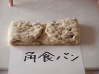 ●ボッシュコンパクトミキサーと12センチ食パン型2個を準備して角型スクエアと山高のブドウパンを2本焼いてみました。今回は干しブドウを一番初めから入れて捏ね上げます。生地にもほんのりブドウの香りがしみて食べ過ぎちゃうのが恐ろしいほどです。成型は2パターンをご紹介いたします。山高ブドウパンと12センチ角のブドウパン。粉量はかなり多めですが、豪快に一度に2本焼き上げましょ!