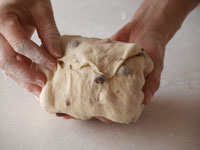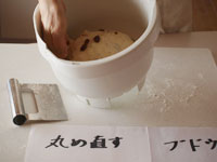MEMO 今回のポイントは、干しブドウに水分を充分に吸わせておくことです。もちろん捏ねるときはびしょびしょのままではいけませんから適度に絞ってから使います。