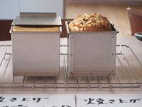 2センチの食パン型2個準備して 角型スクエアと山高のブドウパンを焼きましょう