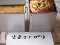 41.第二発酵が完了した状態です。山高パンは真横から見て、一番膨らんだところが1.5〜2センチ飛び出した状態がベストです。角食パンはそっとあけてみて蓋すれすれまで発酵していたらOKです。山高パンには白身を塗りアーモンドスライスをトッピングします。