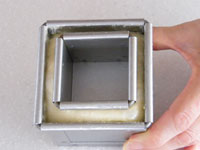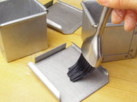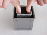 1、今回はショートニングを塗る面をお間違いのないように。「キューブ75」は本体と蓋の内側に塗っておきます。「ベビーキューブミニミニ50」は外側に塗ります。これで型の準備はOKです。