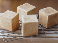 1.次にパン生地を準備します。今回はホームベーカリーで第一発酵まで行います。材料を専用のポットに入れてスイッチON!第一発酵終了まで待ちましょう。この間に型の準備をしておきます。キューブ型の内側と蓋の内側にショートニングを塗っておきます。ショートニングがなければバターでも良いです。