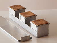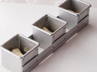 ※3連結のパン型の内側にバターを塗っておきましょう。蓋の内側にも忘れずに!
