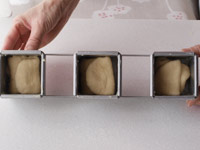 4.型に生地を入れたら、軽く霧を吹き蓋をします。ビニール袋に入れて暖かいところで(35度くらい)約45分の第二発酵をいたします。