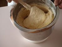1.ボウルに卵黄を入れ、砂糖30グラムを加えます。加えると同時にすぐにミキシングを始めます。卵黄は水分が少なく砂糖を加えてそのまま放っておくとブツブツしてきますので砂糖を投入したらすぐにミキシングを始めましょう。徐々に白っぽくもったりしてきます。そこまでしっかり泡立てましょう。
