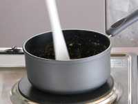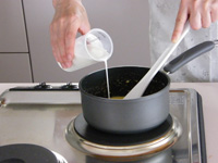 1.お鍋に水とバターを入れ火にかけます。中強火でバターが完全に溶け、さらに一気に沸騰してきますから、この沸騰した状態を確認したら火を止めます。
