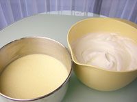 材料(デンマークパンで4回分ほどできます) 薄力粉 85グラム アーモンドプードル 40グラム ベーキングパウダー 小1と2分の1 塩 ひとつまみ 卵黄 3個 卵白 4個 砂糖 70グラム 牛乳 270CC リコッタチーズ 50グラム 溶かしバター 50グラム ブルーベリー 適量 |