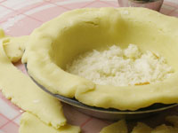 ※ パイ皿の大きさからみるとパイ生地の材料が少し多めですがこのくらい用意するとやり易いです。余ってしまった生地はもう一度伸ばし、小さめの型でタルトレット3個分として焼いてください。