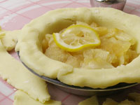 ●パイ生地は失敗のないビスケット生地で作ります。クッキー生地とも言いますが、このビスケット生地はリンゴだけでなく、他のパイにもよく合いますからぜひお試しください。リンゴの代わりにお食事にピッタリのミートパイにもよく合いますし、ヘルシーに仕上げるなら、ラタテュイユを具にしてもGOODです。サクサクの食感はとても評判の良いパイ生地です。今回はノルディックのパイ用パンを使用してみました。大きさが小さめなことと高さがあるのでリンゴをたっぷり入れることができます。こびり付きにくいフッ素加工のパイ皿なのも嬉しいですね。