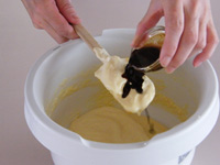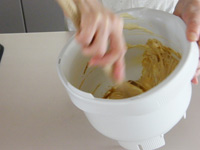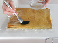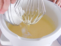 注:色が付き始めると一気に焦げてきますが、この時あわてずに一度火からおろしてアーモンドスライスを加えると良いでしょう。焦げてきたお砂糖液はとても高温になっていますから気をつけましょう。