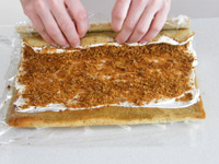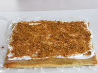 ●アーモンドの香りと砂糖を焦がしたカラメルの風味は特別の美味しさです。そんなプラリネを生クリームといっしょに巻き込んだロールケーキはとても贅沢なお味