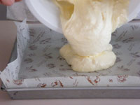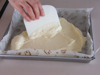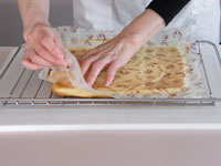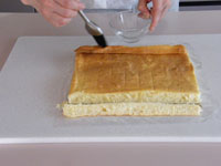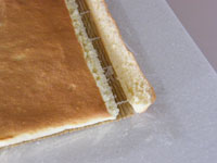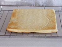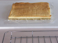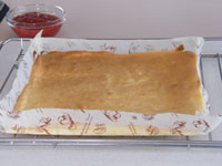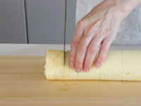 MEMO ラップで密閉し冷蔵庫で一晩おくと、生地がしっとりして美味しくいただけます。いままでは、オーブンの天板に敷き紙を敷いてロールケーキを作っていましたが、ロールケーキ専用の型は平なのが良いですね。ロールケーキは厚みが均一なのが大事です。焼き時間が少ないため、厚みにムラがあると場所によって焼きすぎたところがあったりします。今回ロールケーキ専用の型を使ってみたら、厚みが均一なので焼き色も平均的に綺麗に焼き上がりました。
