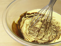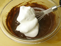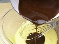 3.卵黄をミキシングしたところへ「1」のチョコレート生地を加え、再び泡立てます。全体が均一になじんだらOKです。
