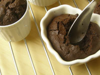 7.ハートのラムカンに生地を七分目まで入れます。170度のオーブンで15〜18分で焼き上がります。熱々のところをスプーンですくっていただいて良いですね。またしっかり冷やしバニラアイスを添えていただいても、とても美味しくいただけます。
