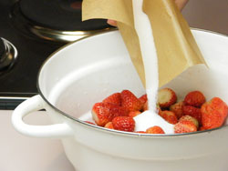 材料 小さめのイチゴ 3パック グラニュー糖 200グラム お鍋はホーローがGOODです。