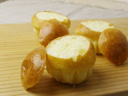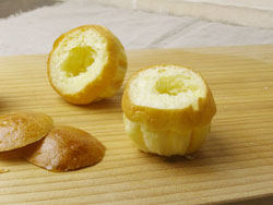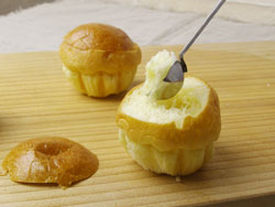 クリームを詰めるためにブリオッシュの生地をほじくります。