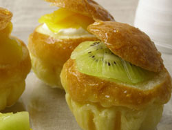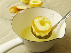 MEMO ブリオッシュはほのかな甘みのあるパンですが、サバランにするときはシロップをたっぷりと吸わせます。冷蔵庫でしっかりと冷やすと美味しくいただけます。