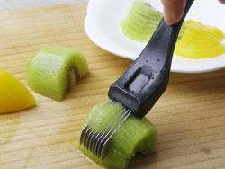 1.キウィは皮をむき、縦に4分の1にカットします。