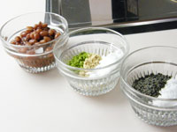 ※ 表面にまぶす材料は、あらかじめ用意しておきます。きな粉は抹茶・砂糖と合わせます。黒のすりゴマも砂糖と合わせておきます。アンコは缶詰めなど開封しておきましょう。