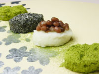 オーバルの三色ぼた餅はどれもひとくちサイズ!