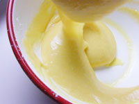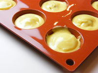 6.型の一個のサイズが小さいので、絞り出すときれいに型に流しいれることが出来ます。ちょっと面倒でも搾り出すと可愛らしい整った形のリングケーキに焼き上がります。オーブンを200度に予熱し、オーブンに型を入れた時点で180度に設定し7分焼きます。