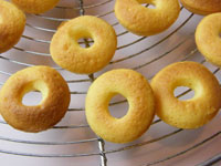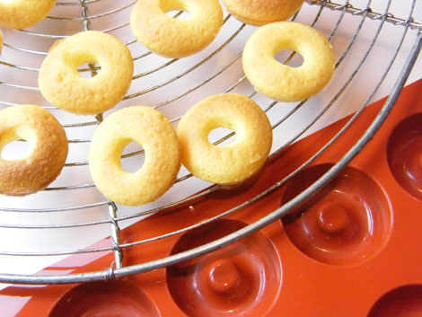 7.ケーキテスターを刺してみて何も付いてこなければ出来上がりです。型からはずし網の上であら熱を取りましょう。ミニミニリングケーキの完成です。