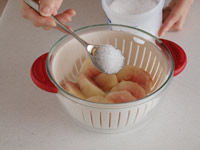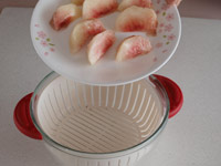 1.桃は皮を剥き、くし形にカットします。