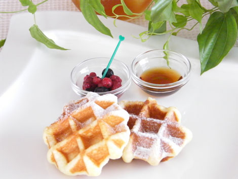 7.焼き上がったベルギーワッフルはアツアツを召し上がってください。また冷めてしまってもトースターで2分ほど温めていただければ、とても美味しくいただけます。