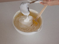 5.さらに卵白を2度に分けて加え、泡をつぶさないように合わせていきます。これで生地の完成です。