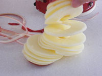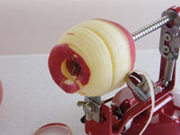 1.アップルピーラーでリンゴ6個の皮を剥きながら、同時に薄くスライスします。