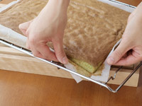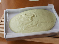 注:ロールケーキ型には敷き紙を敷いておきます。