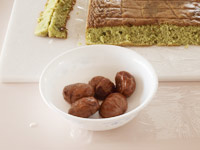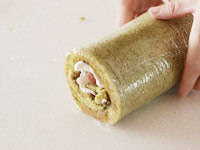 抹茶のロールケーキにはホックリ栗の渋皮煮を巻いて!
