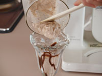 ◎スピードは、高速の「4」と低速の「1」を交互に使いながら牛乳氷を細かく砕きます。回転させる時間はおよそ15〜20秒ほどです。牛乳氷を砕くために大きな音がしますが、びっくりせずに攪拌させましょう。