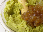 2.熱いうちにサツマイモの皮を剥き、ボウルに入れます。そこへ砂糖と室温に戻したバターを加え、すりこ木でつぶします。少しサツマイモの断片が残っているくらいでOKです。