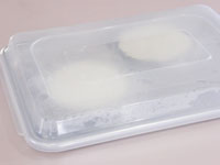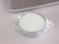 5.ここからはチーズクリームです。耐熱ボウルになめらかタイプのカッテージチーズを入れ、レンジで15〜20秒ほど温めます。柔らかくなったところで分量の砂糖の半分を入れてよく混ぜます。砂糖が溶け、なめらかになればOKです。