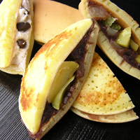 3.両面焼き色がついたら、網の上で冷まします。あとは中に入れる具をはさむだけです。あんこの半分はねりゴマを少量加え、ゴマ餡にするのも美味しいですよ。
